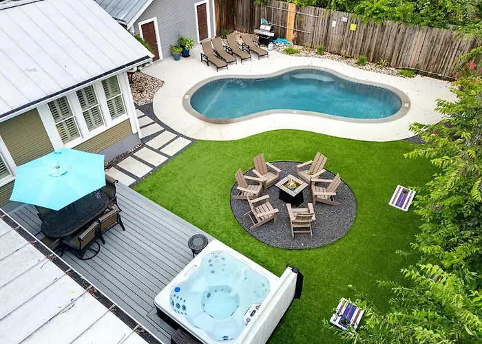 Nestled in the heart of Fredericksburg, Maverick's Manor - Hot Tub Pool Fire Pit is an exquisite retreat that perfectly balances rustic charm with modern luxury. Surrounded by picturesque vineyards, this haven offers guests an idyllic escape while providing upscale amenities that cater to every traveler's desire. The manor's enviable location makes it an ideal base for exploring nearby attractions, including wineries, historical sites, and local shops. With convenient transportation options available, guests can effortlessly navigate the area, ensuring that every moment spent at Maverick's Manor - Hot Tub Pool Fire Pit is filled with adventure and tranquility alike.